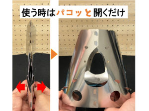 固形燃料の風除けにも良さそうなので、DDタープのステルス張りなどで中で使えないかな。