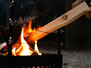 ワイヤーで薪を安定させるっていう事は思いもよりませんでしたし、これなら横方面にも熱が出ます。